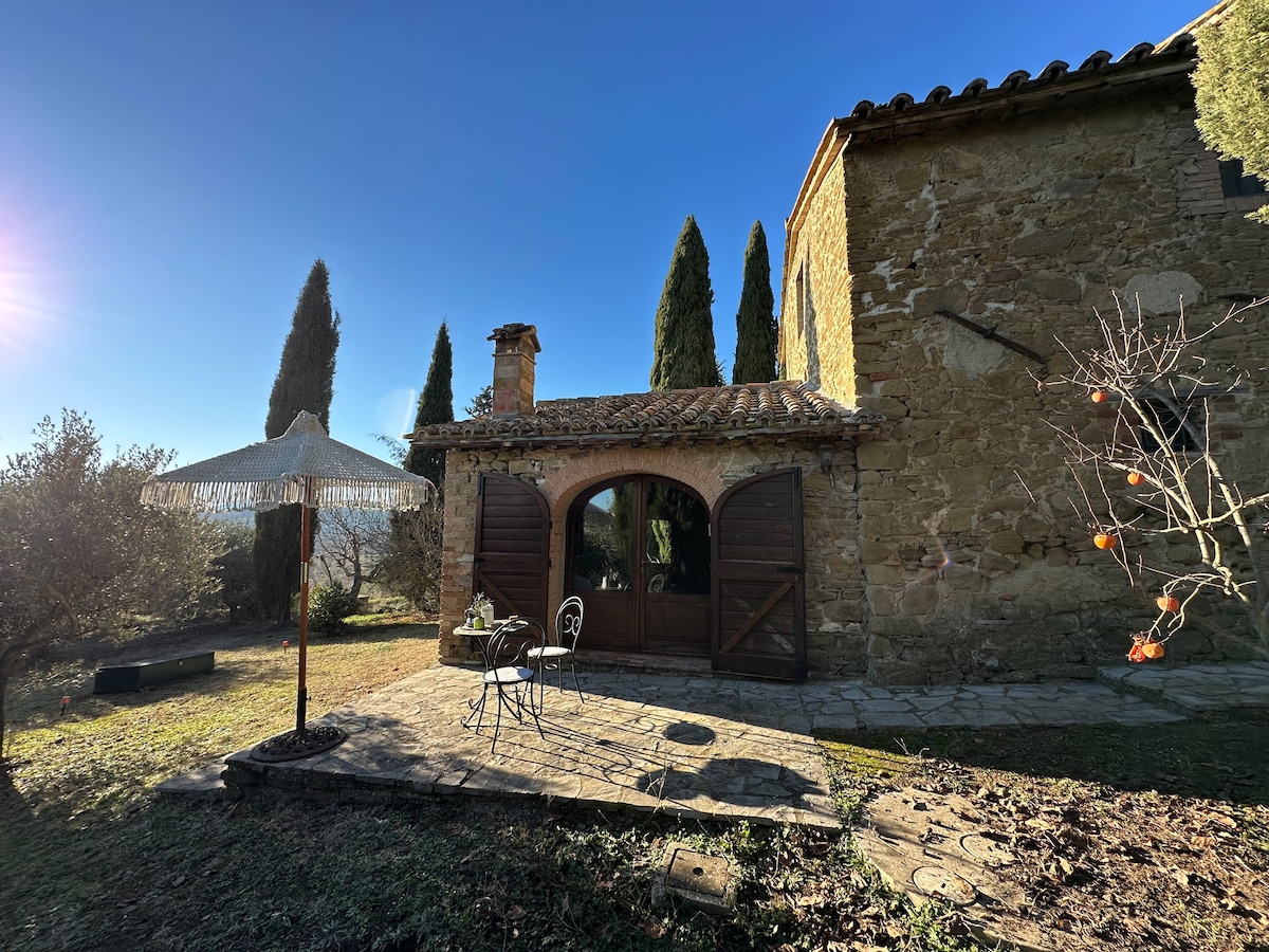 La nostra unica camera per gli ospiti è un’accogliente suite con ingresso indipendente, arredata come una piccola pinacoteca. Include bagno privato, soggiorno con caminetto e cucina attrezzata, tutti a uso esclusivo. Piscina interna riscaldata e piscina esterna con sdraio sono riservate agli ospiti. Intimità, bellezza e silenzio garantiti. Su prenotazione: cena romantica con chef privato e laboratorio Paint and Wine per brindare dipingendo.