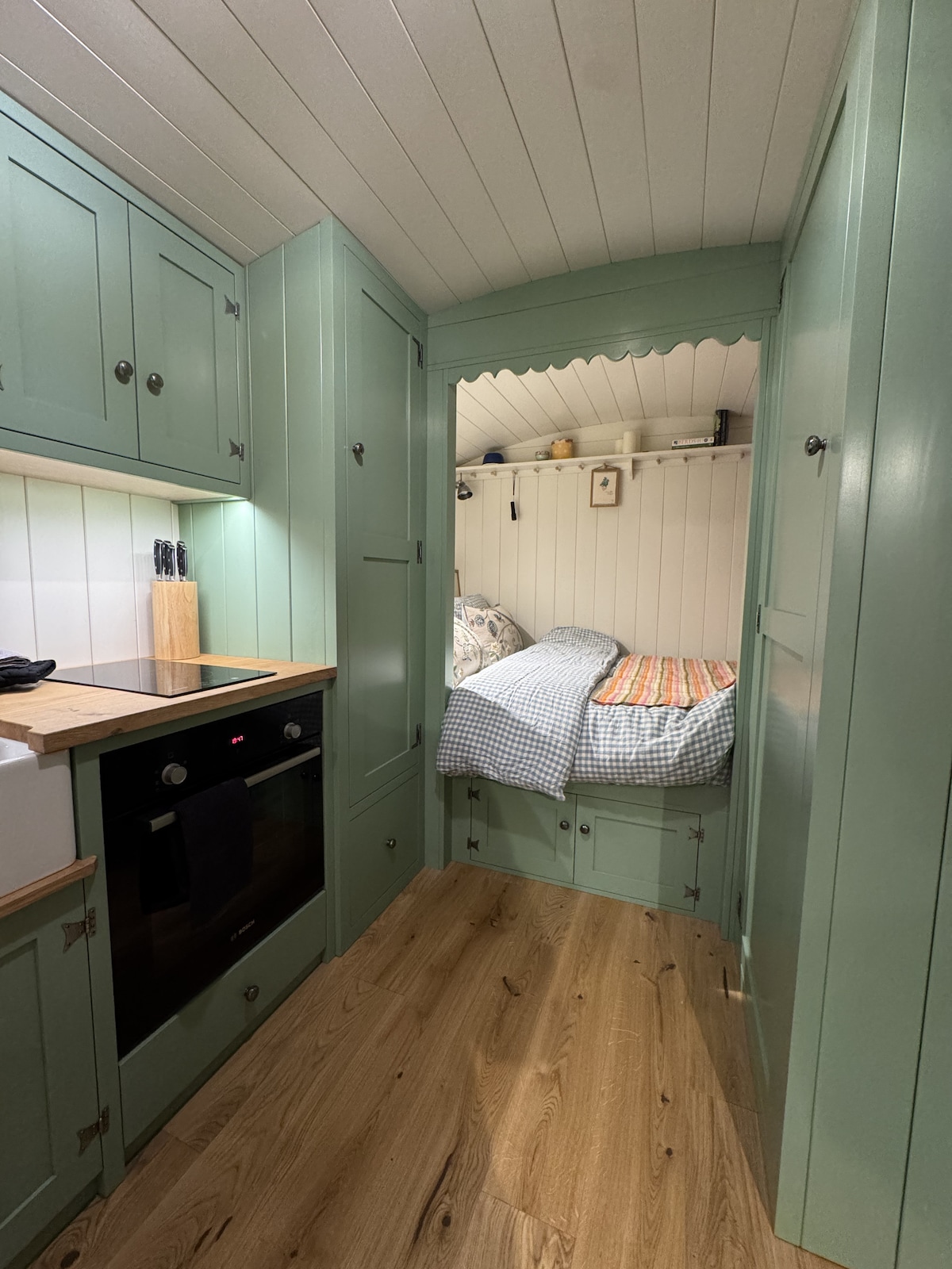 The tiny house is built for your soul, beautiful natural materials, soft wood under your feet, natural textures, and light that shifts gently throughout the day. Every detail was considered and designed, every object chosen with care. The big window blurs the line between inside and outside, so you wake with the trees and fall asleep under the sky. It’s small, but it wants to feel boundless — like an escape that brings you closer to nature, to simplicity, and to yourself.