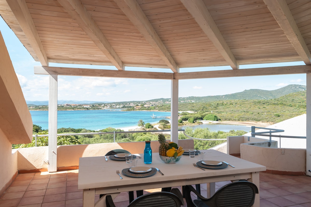 Vista Playa 1 a Nodu Pianu in Sardegna è un accogliente appartamento al 1° piano mansardato con magnifica vista mare, a soli 100 mt dalla splendida spiaggia di Cala Nodu Pianu e Cala Banana. La casa dispone di 2 camere da letto, una matrimoniale e una con tre letti singoli, un bagno, soggiorno con cucina attrezzata, un ampia terrazza con veranda. Nodu Pianu posizionato tra Olbia e Golfo Aranci, è il villaggio ideale per chi cerca avventura e relax. Perfetto per famiglie e amici. Auto necessaria.