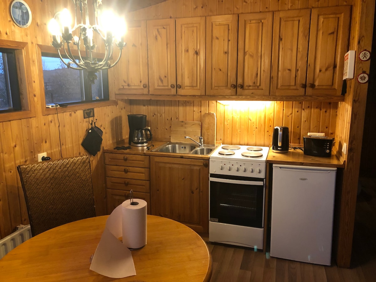 Easy winter access near Gullfoss and Geysir quiet countryside stay Easy parking right by the entrance a warm comfortable place to rest after exploring the Golden circle Beautiful cabin by the river Hvítá in a prime location in the Golden Circle near Gullfoss and Geysir . The cabin can accommodate 4 persons.