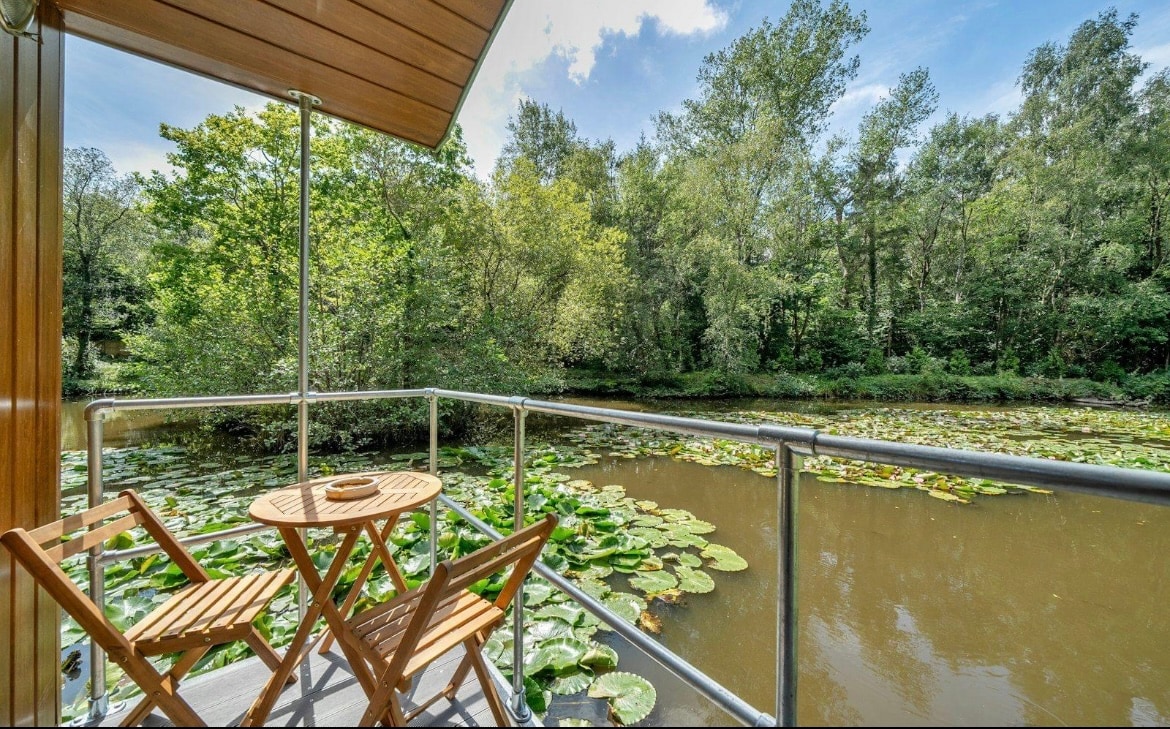 带私人露台和游泳梯的迷人船屋
