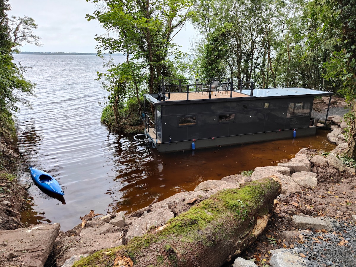 Unique boathouse escape! Tucked in woods, near Garrykennedy. Perched on Lough Derg, secluded yet convenient. Meticulously outfitted. Relax on the boathouse roof or explore nature. Indulge in private, covered hot tub & fire pit (€120/2 nights: cleaned, heated with firewood, no chemicals added). kayaks available. Disconnect from city life, immerse in nature's calm. Your extraordinary retreat awaits! Larkins Restaurant i only 4 min drive.