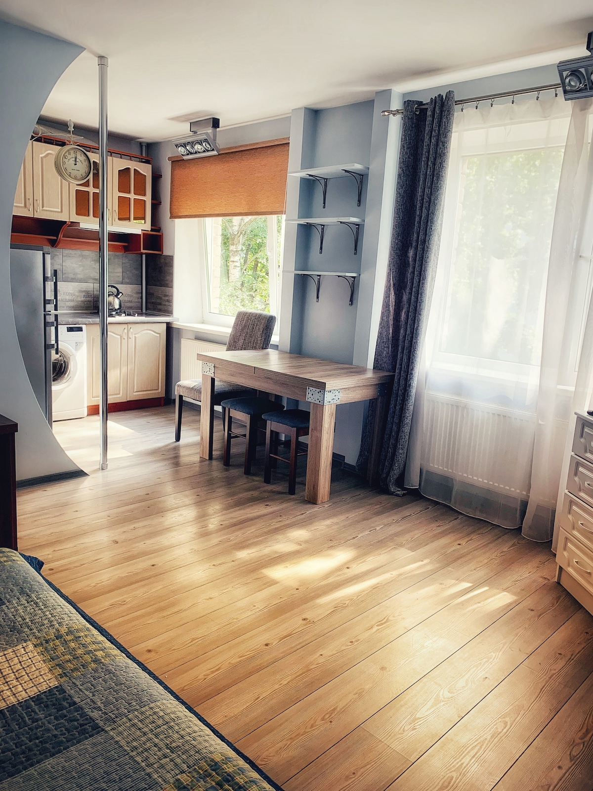 Studio apt on New Kings Road . Newly refurbished . Parsons Green Ideal for single professional. For bookings over 2 weeks cleaner is provided free of charge . Very bright apartment on the first floor. Neutral colours , wooden floor , modern kitchen area with induction hob , telescopic cooker hood, oven with grill , microwave , washing machine with dryer. Quartz worktop. Vi -Spring double-bed. Vispring is a luxury British mattress manufacturer . Italian glass wardrobe . Fast fibre internet !