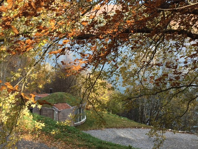 This turf covered cabin is a blend of Viking longhouse and underground hobbit hideaway. It's in a beautiful spot in our orchard between the mountains and the sea on our small permaculture farm. Experience camping fire cooking, and clear starlit skies, whilst having a comfy bed, a kitchen, hot water, shower compost toilet and a wood burning stove to cosy round if it gets cold. All on our sustainable ecological farm which has lakes, woodlands and animals to find and explore.