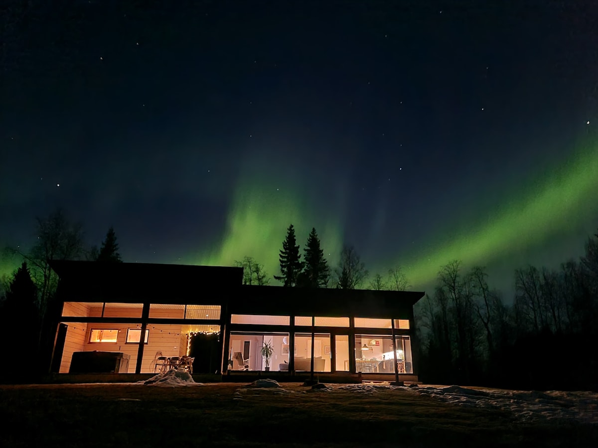 豪华河滨别墅:极光景观和烧烤小屋