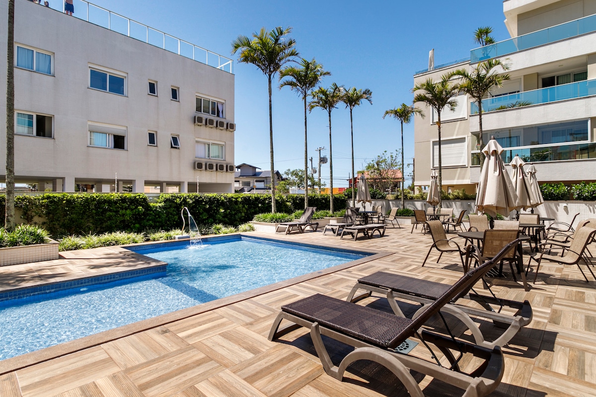 Lindo apartamento, mobilhado, no melhor condomínio com Piscina do Sul do Pais - Marine Home Resort 1 quarto com suite com 1 cama de casal e 1 cama de solteiro, 1 lavabo, cozinha, sala dois ambientes, área de serviço, sacada com churrasqueira. Na sala há 1 sofá-cama super confortável e um colchão inflável Ambientes com AR CONDICIONADO. WIFI, SMART TV com NETFLIX nas 2 TVS (IPTV) Garagem coberta para 1 carro Condomínio a 100m da praia da Cachoeira. Possui Minimercado no térreo