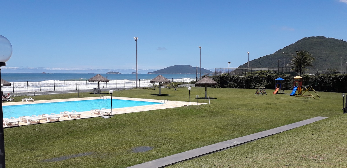 Apartamento de um quarto com estacionamento, condomínio em frente ao mar com piscina. Lindo visual e por do sol no final de tarde maravilhoso. Acesso à praia calma. Possui cama queen no quarto e sofá cama na sala. Internet adequada para Home Office.