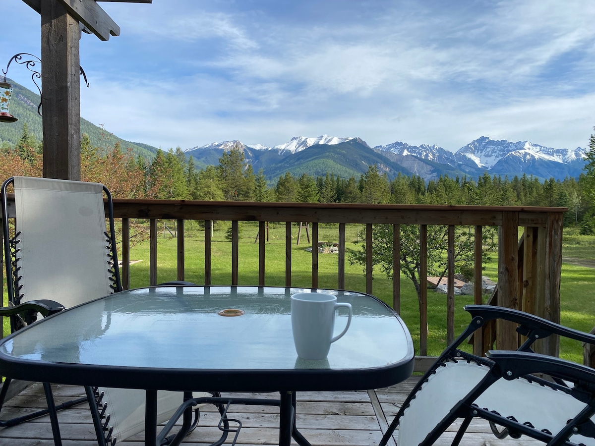 Locally owned and operated: Moberly Guesthouse is a ten-minute drive from Golden BC. Enjoy the natural surroundings, mountain views, and an abundance of wildlife while you relax in your private suite after a day of exploring the Canadian Rockies. The Main Floor Suite occupies the main floor of the cabin on our property. Price is based on two people. Additional guests are charged $25/night. No hidden cleaning fees. This is a family-run guesthouse. We are happy to give you tips about the area.