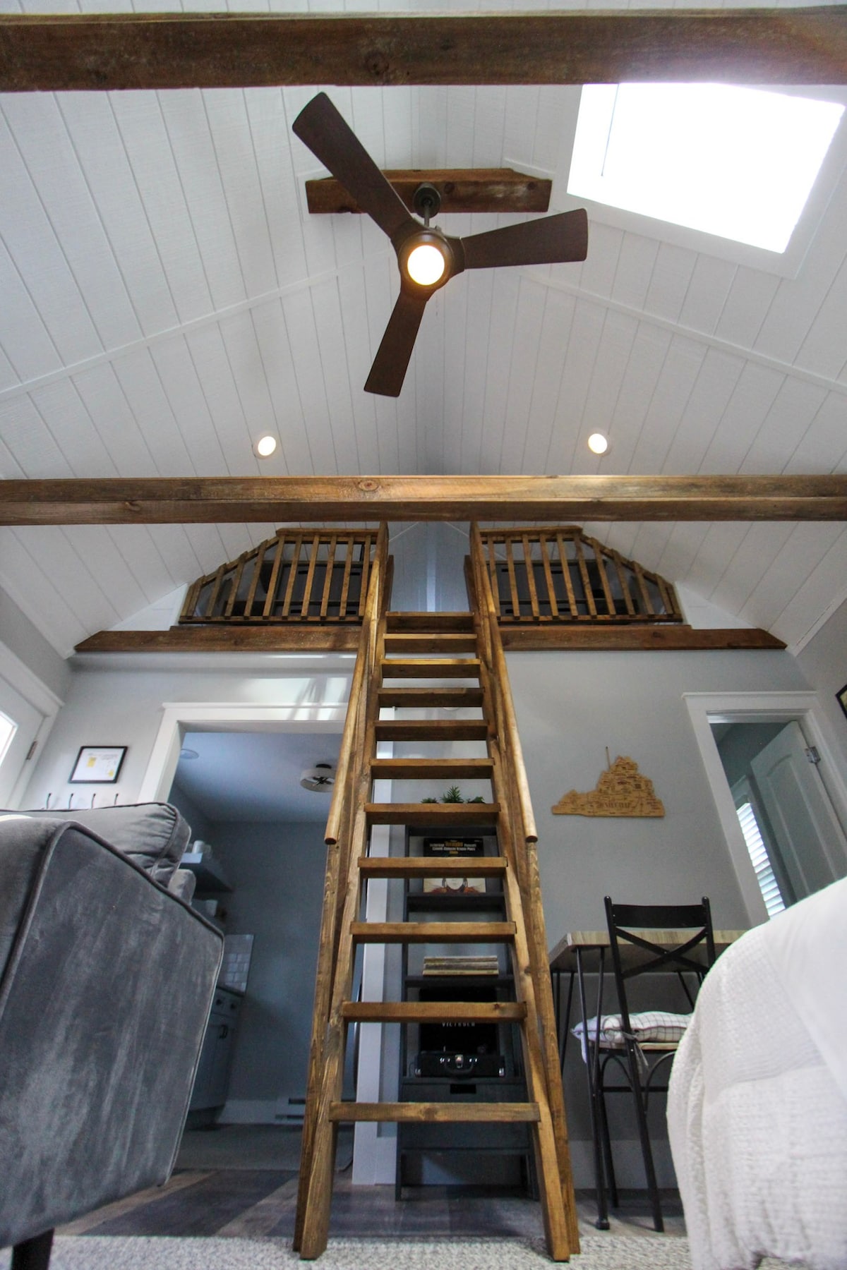The “Beach House” is a guest cottage at Snug Harbor, a 2 acre private property overlooking the Rappahannock River and Chesapeake Bay. Perfect for a couple’s getaway, this well-appointed cottage has beautiful water views and includes access to our private beach & dock (with guest slip) with use of our paddle boards and kayaks. The cottage’s 1st floor features an open liv/din/kit area, full bath with large shower and a covered patio. The 2nd floor features a large loft bedroom with a queen bed.
