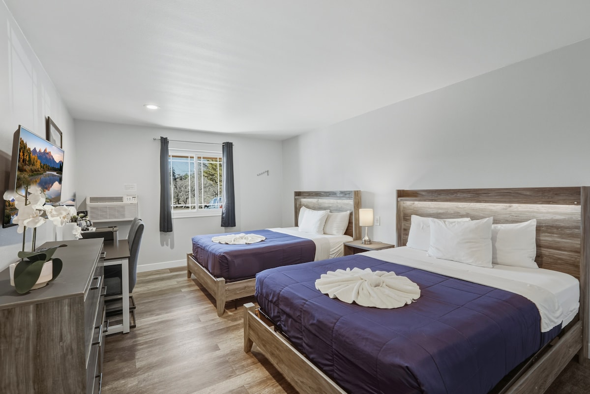 These rooms have one bedroom with a queen bed, a separate kitchen/living area with a futon. These rooms are ground floor just steps away from Alpines private park with river access. No Trailer Parking: Alpine Lodge no longer allows trailers on property, that includes loading and unloading vehicles. Any guests traveling with trailers must use Red River's public parking areas for parking, loading, and unloading vehicles from trailers.