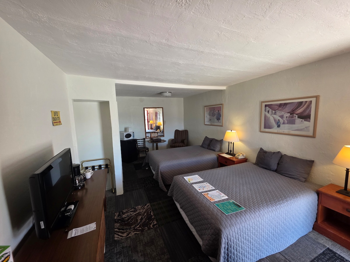 Set along I-25 with easy access to Las Vegas’s historic plaza and museums, the hotel makes a great home base for exploring Northern New Mexico. This spacious room with two queen beds is ideal for families or groups. Settle in with comfort and the essentials you need for a smooth stay.