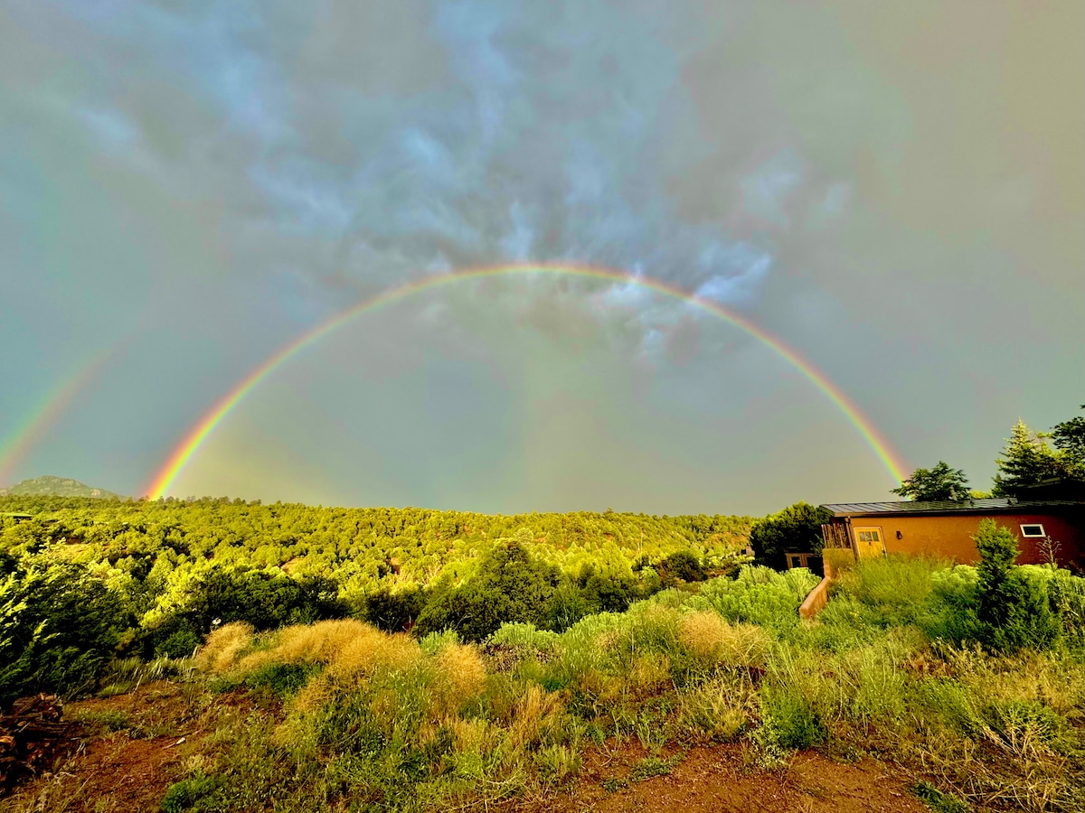 Artist Rod Goebel crafted this peaceful sanctuary-a residence, chapel, screened-in patio & guesthouse, on a stunning six acre beauty, fully fenced rural retreat. Enjoy a covered patio, grill. hot tub and partial kitchen with all the essentials. Just 12 mins from town, near Taos Ski Valley road. Pet friendly, sacred & private, our property was named the top Airbnb in Taos for 2025- "Only in New Mexico" online. Come unwind with art, nature's splendor and true relaxation, under starry skies.