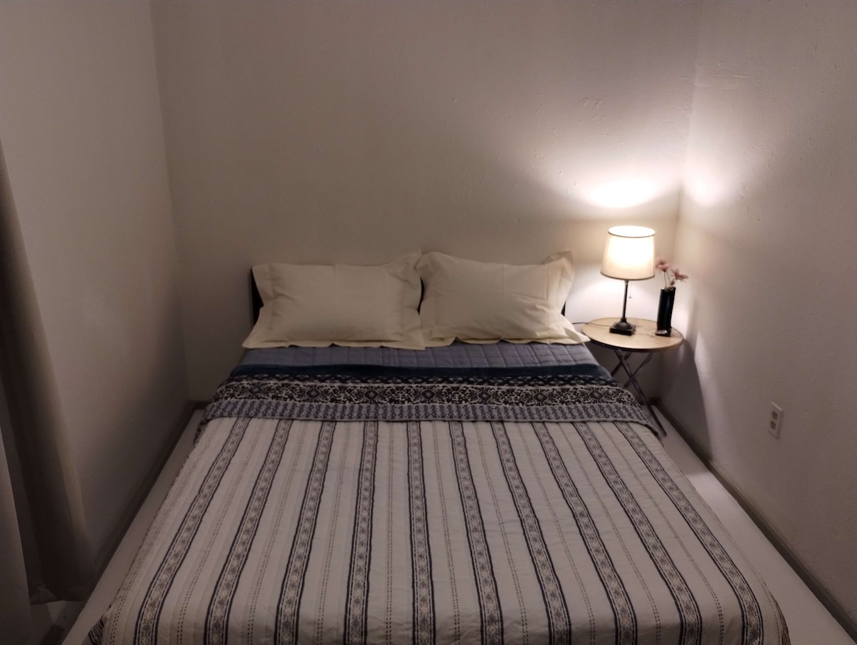 改建的小屋、加大双人床、火坑、空调