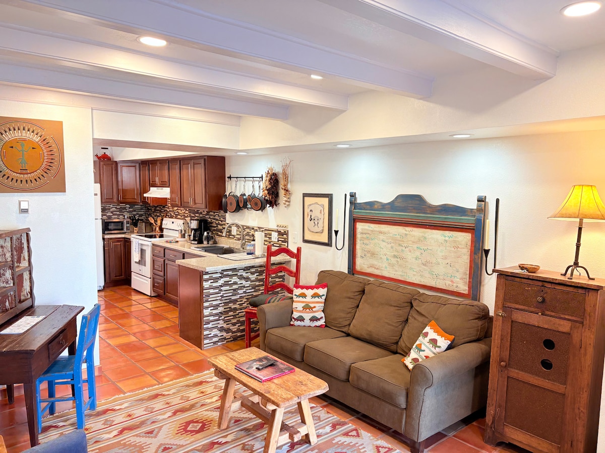 Cozy Santa Fe Retreat – Walk to Downtown Discover authentic Santa Fe charm at this privately owned duplex in the close to downtown. A short stroll takes you to the historic plaza, New Mexico State Capitol, and dining spots, with Canyon Road also within reach for art lovers. Relax by the kiva fireplace or unwind in the private backyard with the sound of a peaceful fountain. Free parking in front for your convenience. Ideal for art, history, and relaxation, this is the perfect Santa Fe getaway!