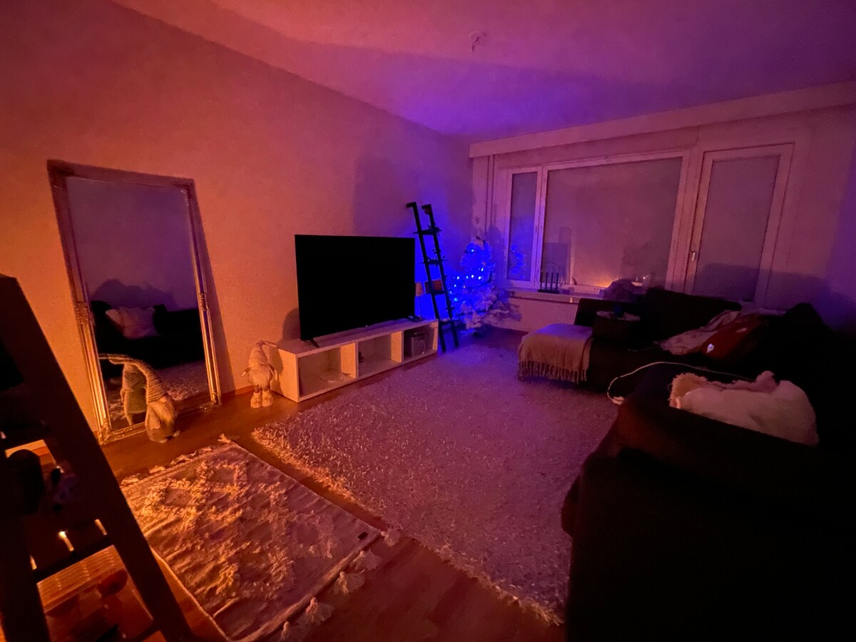 Simple and peaceful accommodation in a central location, 10 minutes by bus from the city centre. Was a superhost before the pandemic. You can sometimes also see the Northern Lights from the balcony. I can pick up my guests by car at the airport and drive them to the apartment (should be between 10:00-20:00), which passes near the apartment. The apartment is suitable for 1-2 people. Coffee, tea, soaps with more and food in the apartment are for my guests. Bed sizes 150x200 and 90x200, both new!