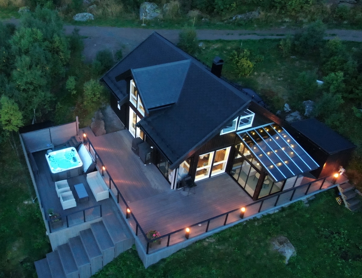 Slapp av med familien på denne fredfulle plassen @heimefraheime Romslig hytte (2019) med gode solforhold og nydelig utsikt over Eidsfjord i Vesterålen. 4 soverom, 2 stuer, kjøkken, bad og en stor balkong med hagestue gir deg mange soner å nyte stillheten og ferien på! Hytta har også eget spabad som kan brukes av våre gjester. Perfekt base for en utforskende ferie i Vesterålen/Lofoten, eller bare for å være for seg selv og slappe av. Hytta har egen parkering, plass til 2-3 biler. (Ikke bobil)