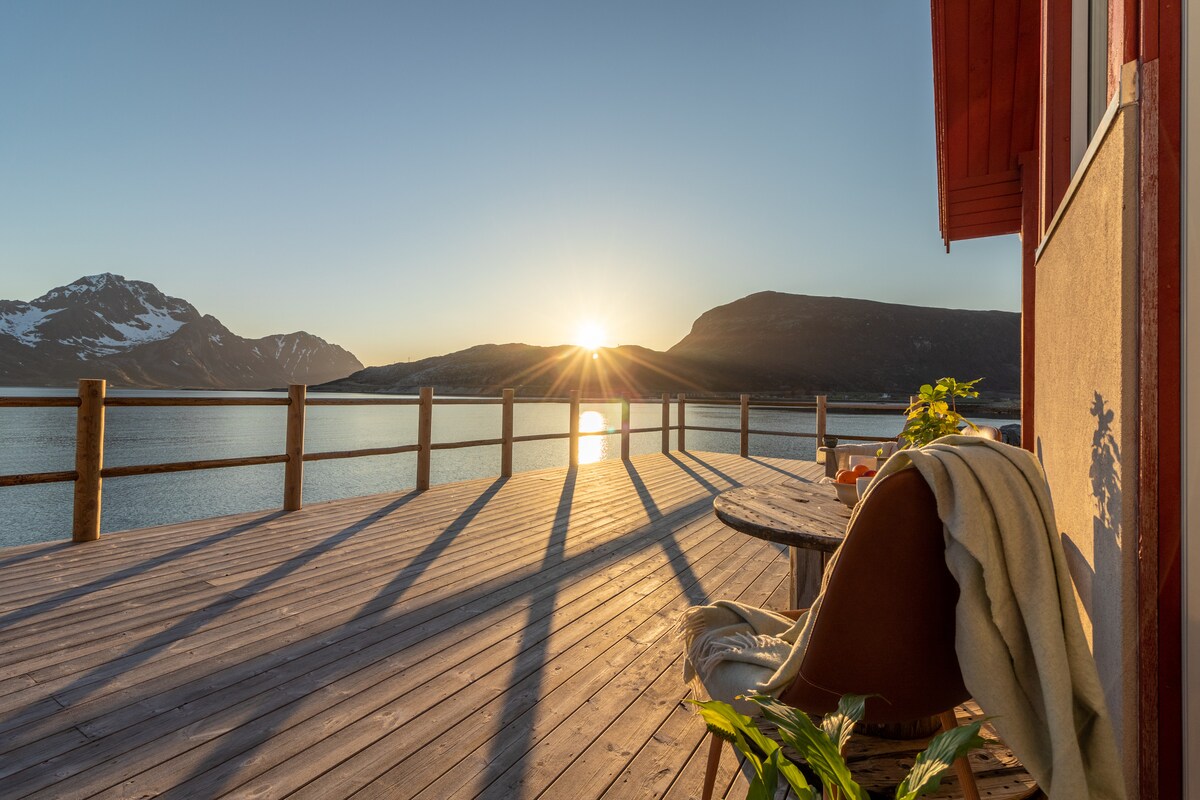 Lofoten is the ultimate place for adventure, but explorers also need sleep! Recharge in a charming and modern rorbu with magnificent views over the ocean and the majestic mountains. With almost no light polution it's a perfect spot to enjoy and photograph the Northern Lights magic, experience an arctic storm or watch the peaks bathe themselves in the red of the Midnight Sun. Close to the water you might dicover you have otters and seals as neighbours. Welcome to your home away from home!