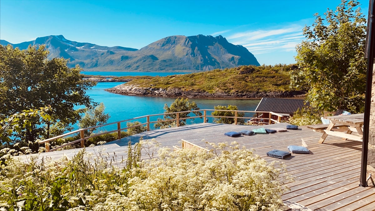 Vidunderlig sted med nærhet til sjø og fjell. Fint sted for familier. Området har fantastisk utsikt til Lyngsalpene, med muligheter for å se nordlys om vinteren og midnattssol om sommeren. Det er gode turmuligheter i nærområdet. Fra eiendommen kan man gå direkte opp på fjellet Storhaugen. Sorbmegáisá er også i nærheten. Kort vei til andre populære fjell. Vedfyrt Sauna og Grillhytte. Sengetøy er inkludert. Ekstrasenger, barnereiseseng, barnestol. Husdyr tillatt. Tilgjengelige truger og sykler.