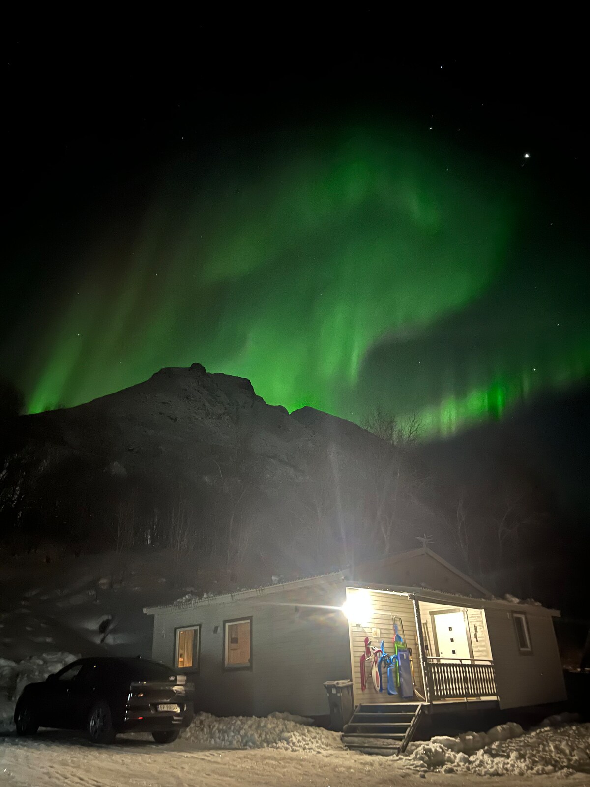This tiny guesthouse has the most beautiful view directly from your kitchen and sleeping room window. Since there's no street lights around, it's the perfect place to watch the Aurora and enjoy a relaxing private getaway in the Arctic. We live next door with our 6-year old son and cat. We are at work from 8:00 are at home from about 4:30pm and on weekends. On-site services: EV charging 400kr/ Private transfer 500kr/Hot tub 1200kr or 100€ for 2 days/Sauna 500kr or 40EUR per use (cash only)