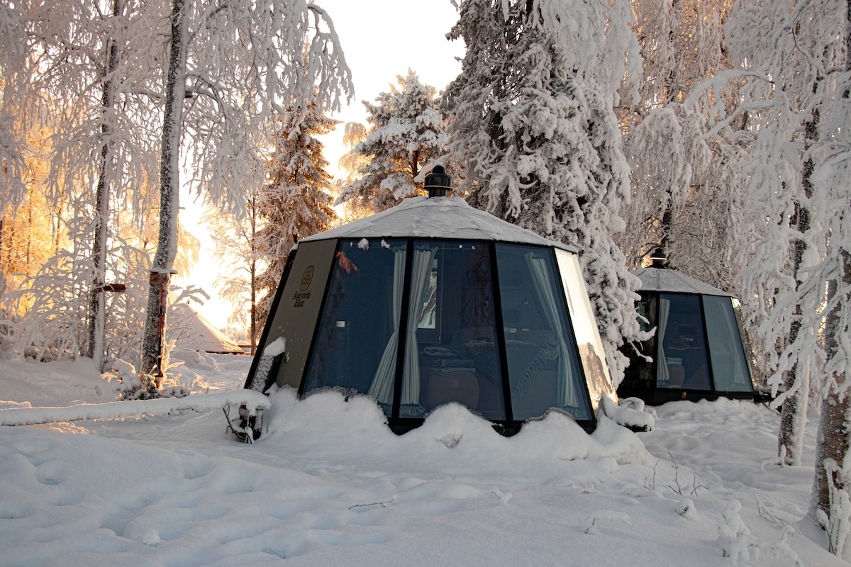 豪华极光玻璃冰屋、热水浴池和桑拿小屋