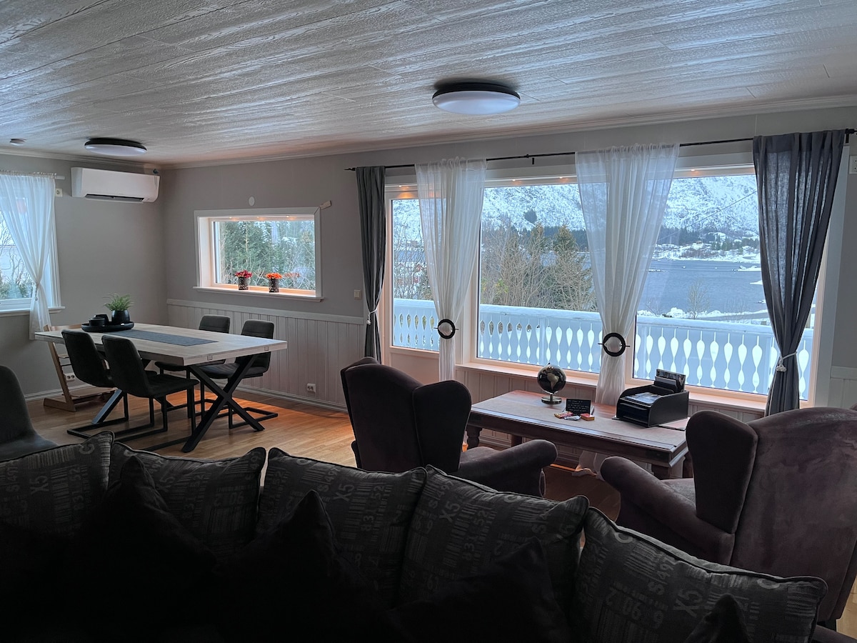 Spectacular new build house (2018) in a lovely, quiet area with a beautiful view to the fjord/sea, mountains and forest in Kvaløya /Tromsø. You can watch the beautiful northern light / aurora borealis from the huge window (10 sqm), sitting in the living room with a cup of tea or coffee in your hand:-) This is a perfect place for tourists who wants to see the northern light, whales in the fjord at winter, hiking/ skiing in the mountains or everything else you want in this lovely city.