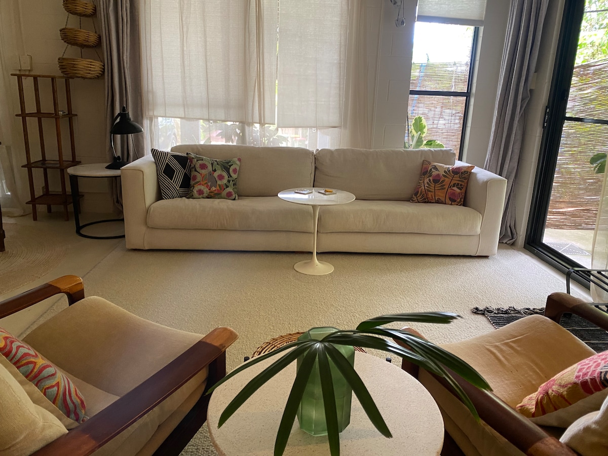 Relax in the haven of Beach Drift, in the heart of quaint Brunswick Heads Self contained flat with a high quality modern renovation throughout. 5 star hotel style mattress and custom made solid wood bed. The stylish coastal decor will inspire your relaxation in air conditioned bliss. Many quality features such as elegant natural wooden furniture, stone benchtops, netflix, filtered drinking water and mood lighting, Close to parks, river, beach, cafes, shops. 35 mins from airports.