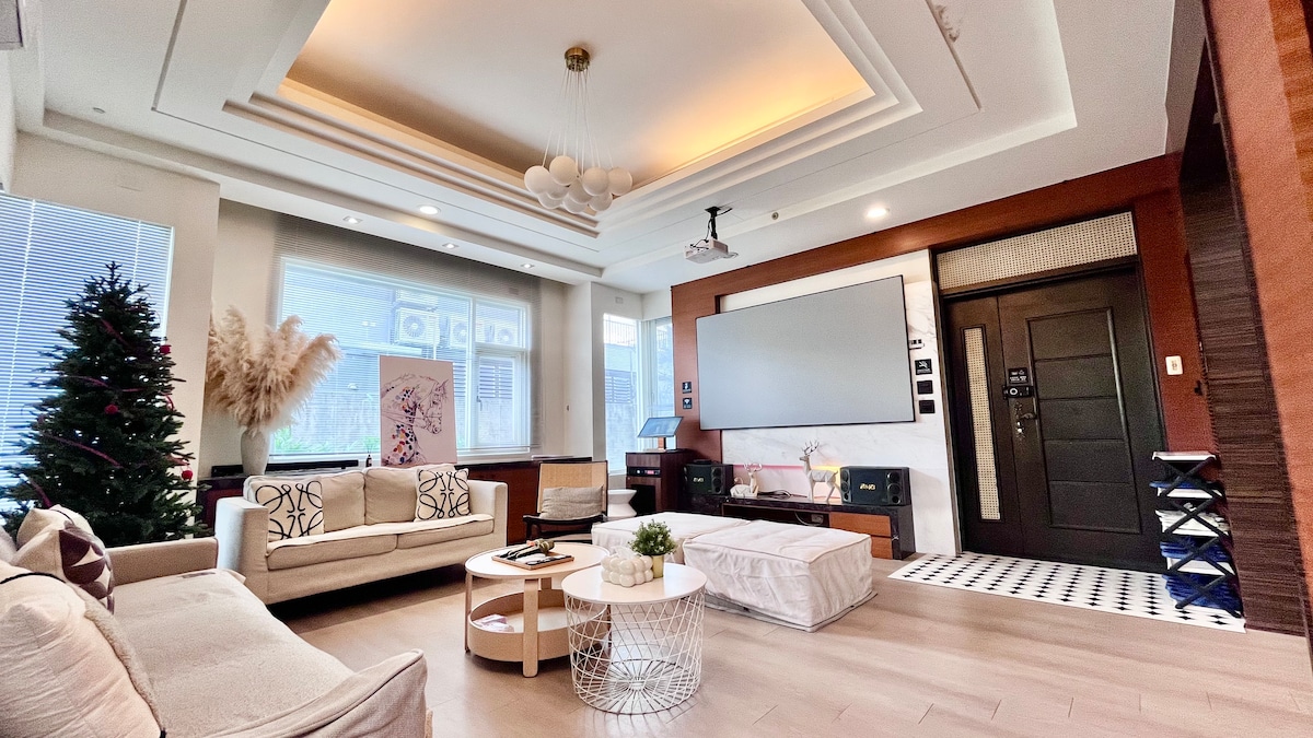 水景璞堤~獨棟4+1房20人/100寸唱歌/電麻桌/飛鏢機/Switch/桌遊/烤肉