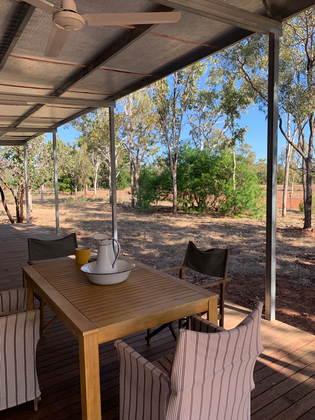 Located on 5 beautiful acres, where you can enjoy your own private space. The deck is the perfect spot to watch the storms roll in or enjoy a beautiful Territory sunset. You can also hop into the pool directly from the deck. The space is all yours! Open plan lounge and kitchen, spacious bathroom and bedroom. If you have extra guests, there is a fold out couch. and we can also organise a porta-cot if you have a little one. Pets negotiable! We know you will love your stay.
