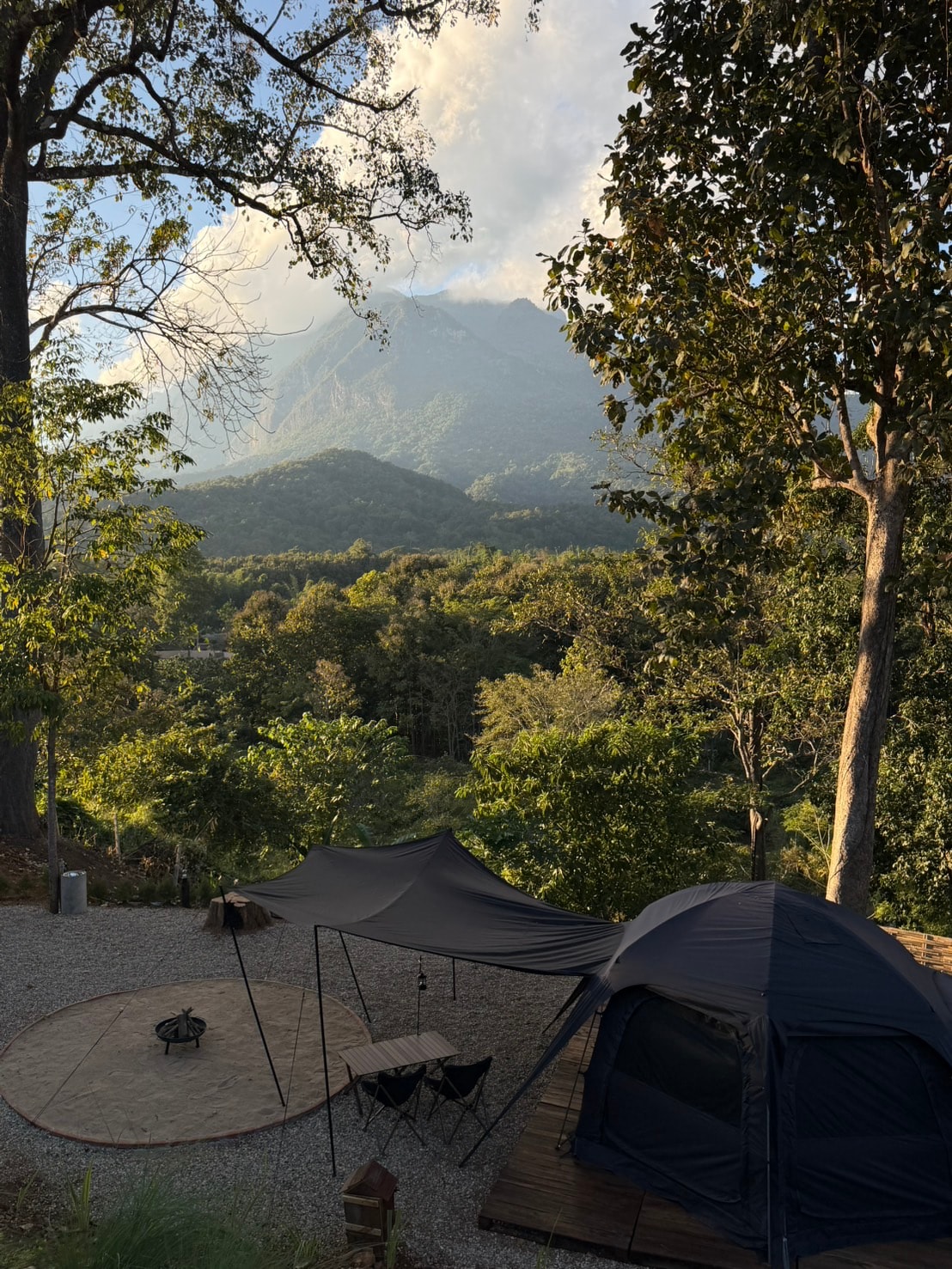 "หนีความวุ่นวาย มาเอนกายในบรรยากาศที่อบอุ่นและเป็นส่วนตัว ดื่มด่ำไปกับความสงบ สบาย และผ่อนคลายอย่างแท้จริง ให้คุณได้สัมผัสช่วงเวลาสุดแสนวิเศษ พร้อมดื่มด่ำกับวิวดอยหลวงแบบเต็มตา เต็มใจ ได้จากหน้าเต็นท์พักผ่อนของคุณ" สัมผัสประสบการณ์ Glamping สุดพรีเมียมท่ามกลางอ้อมกอดของขุนเขา พักผ่อนและผ่อนคลายในเต็นท์พร้อมสิ่งอำนวยความสะดวกครบครัน ตื่นมาชมวิวเขาหลวงแบบพาโนรามาได้จากปลายเตียง ตกเย็นล้อมวงผิงไฟใต้แสงดาวในบรรยากาศที่เป็นส่วนตัวที่สุด เหมาะสำหรับการมาชาร์จแบตให้ร่างกายอย่างแท้จริง