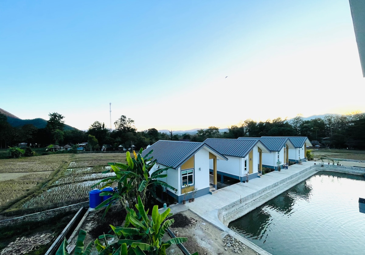 Your 'happy, healthy, healing home with heart', only 30 minutes from Chiang Mai. Revive and reconnect with family and friends in our charming, cozy, spacious guest houses, nestled in rice paddy. Relax on the balcony, overlooking our serene fish pond, with breathtaking views from sunrise to sunset. Head to the village to meet local artisans and enjoy fun, hands-on activities. Explore local forest, hills and lakes on foot or bicycle. Price includes a delicious breakfast and free use of bikes!