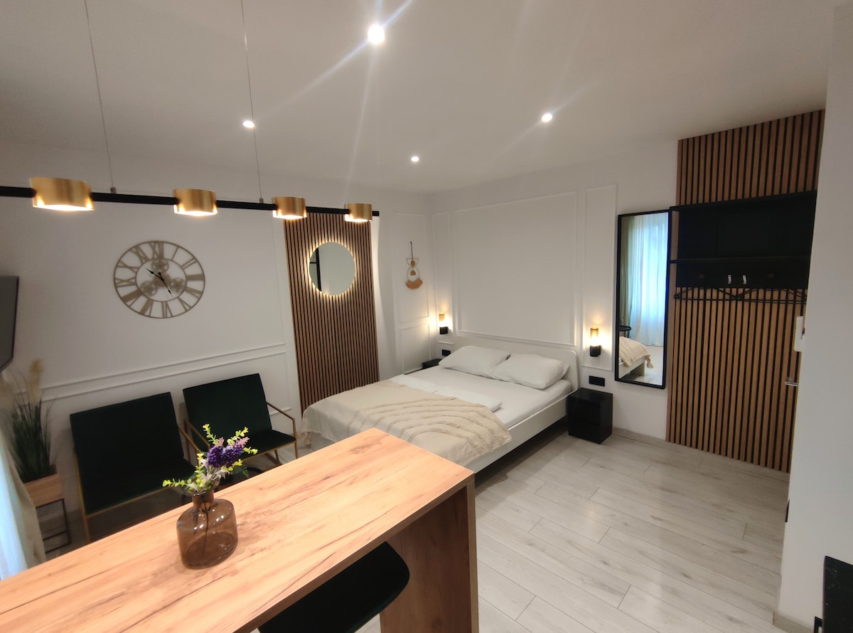 Our newly renovated studio apartment is located in the heart of the beautiful old town of Rab, directly in the Middle street (Srednja ulica 20), looking to the Down street (Donja ulica), and the Forum Pub which we recomand for the best cocktails in Rab. Due to its location it is also perfect for couples exploring the old town of Rab. The apartment consists of bedroom, kitchen, bathroom, and is equiped with aircondition, TV, free Wifi... Free parking in the old town for all our guests.