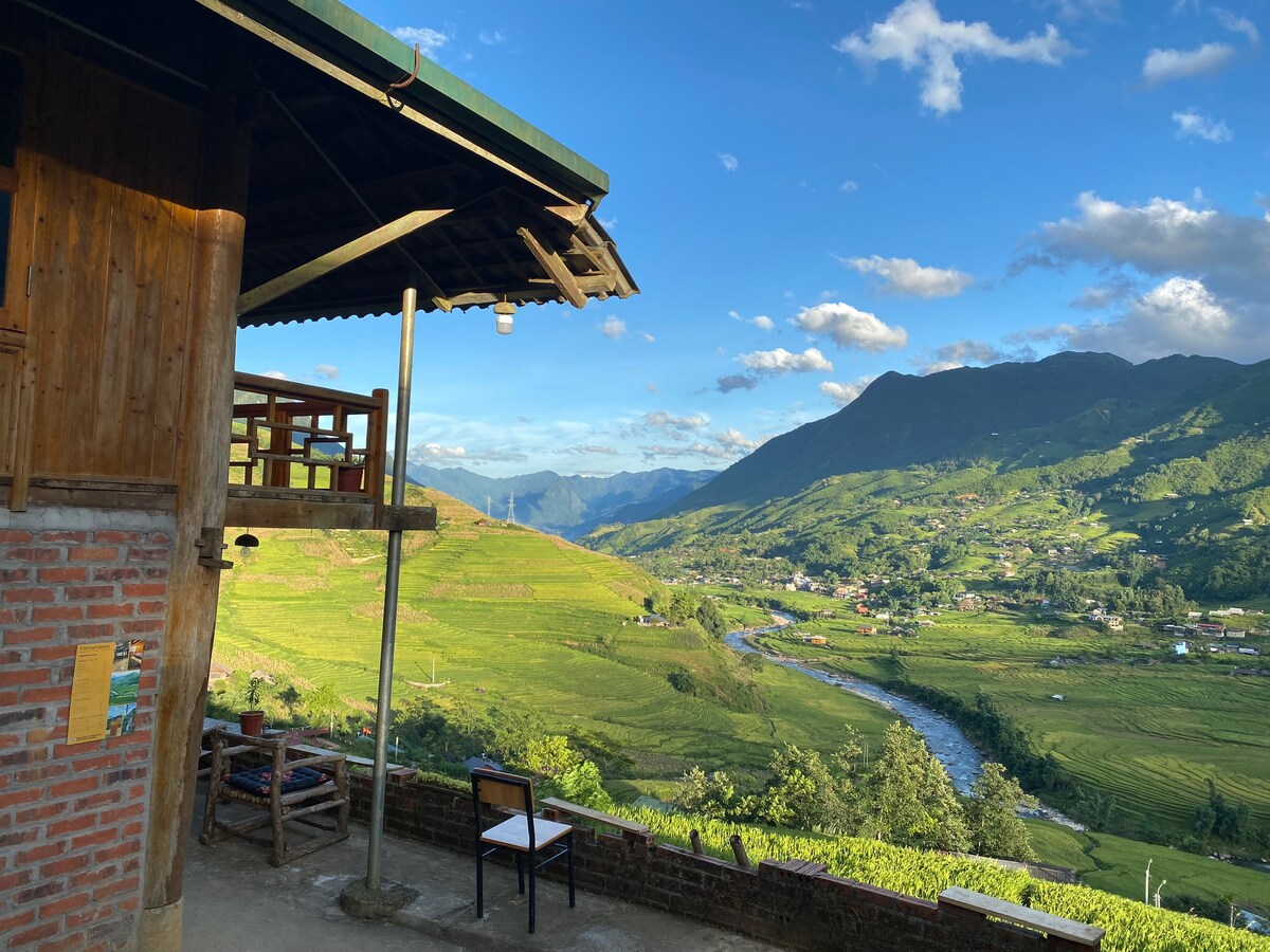 Thư giãn cùng cả gia đình tại nơi ở yên bình này. Những bản sắc của người hmong xung quanh và những cánh đồng mông manh xanh tươi làm cho ta nhớ về người mẹ hiền Có những mùa khác biệt làm cho ta thấy vẻ đẹp hùng vĩ của tự nhiên Thời tiết mát mẻ tuyệt vời Những bữa ăn của người hmong dạng dị Những canh đồng lúa chín màu vàng Có những màu xanh từ cây lúa