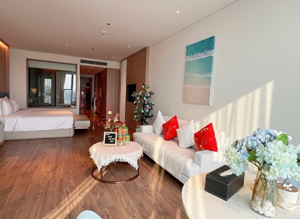 Located next to InterContinental Halong Bay Resort, this 45 SQM fully furnished Studio with breathtaking seaview of Ha Long Bay from the high floor. It's very convenient with full services for relaxing & entertainment & food at exclusive rate for guests staying here and perfectly on the beautiful beach. 🏊♂️Please note that room rate does not include pool, jacuzzi, gym, spa & breakfast which are managed by the 5* à la hotel. You can buy tickets at the reception at the resident rate.