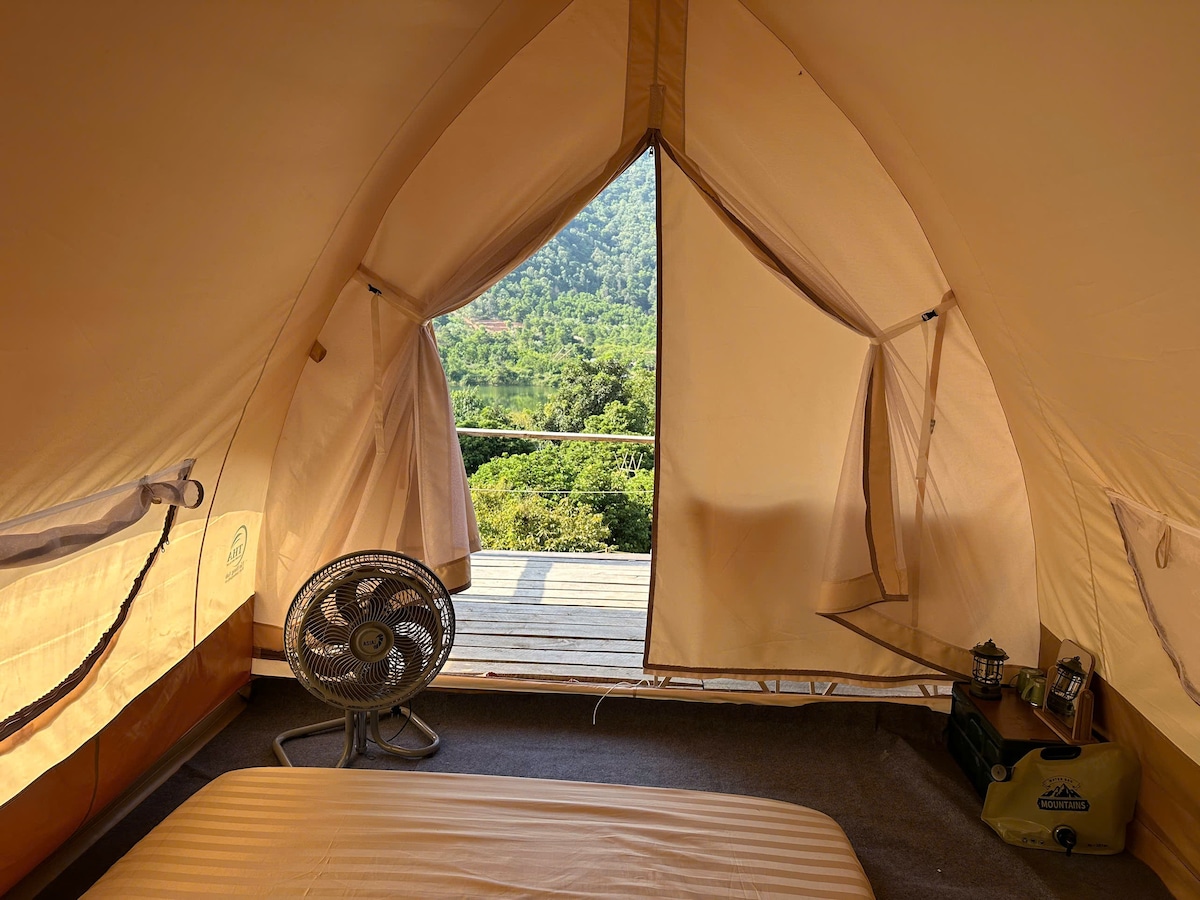 Escape the city and enjoy a romantic retreat in the middle of a quiet pine forest. Our cozy glamping tent comes with air-conditioning, hotel-quality bedding, and a private BBQ setup with charcoal and utensils included. Spend your day kayaking, cycling, or simply relaxing under the trees, then gather around the grill at night and watch the stars. Just one hour from Hanoi, it’s the perfect balance of nature and comfort.