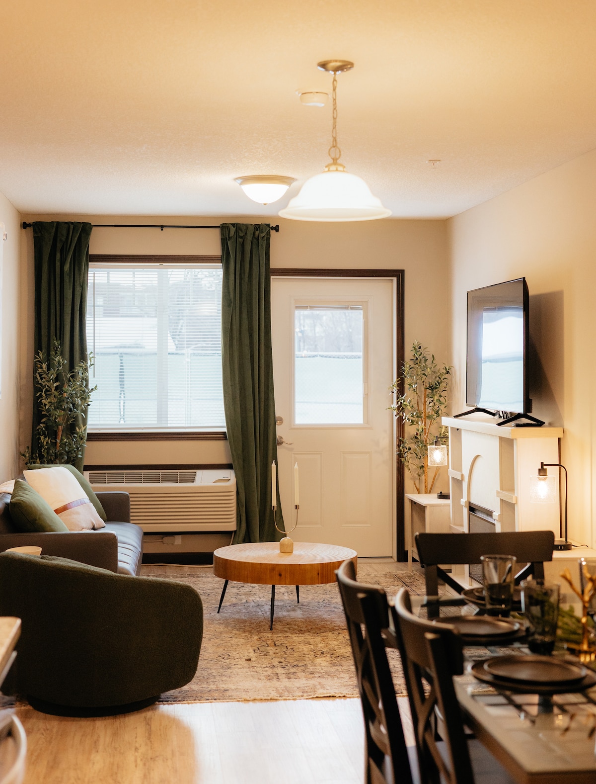 We've designed a cozy modern Scandinavian two-bedroom space for your comfort and enjoyment. This sleek and stylish living space has a city vibe and all the comforts as well as the amenities you need for a great stay. It is located on one of Northfield's most beautiful and historical streets and just a short walk from the beautiful campus of St. Olaf College. This space can be available as a one-bedroom at a lower rate, as well. Look for "Scandinavian Design Suite - One Bedroom"
