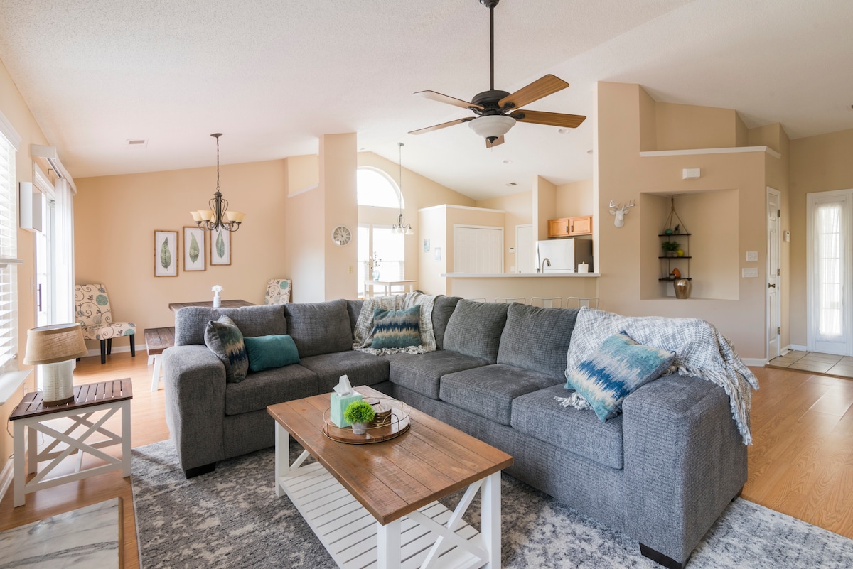 精致的3卧+额外房间/5张床/2.5个卫生间/工作空间