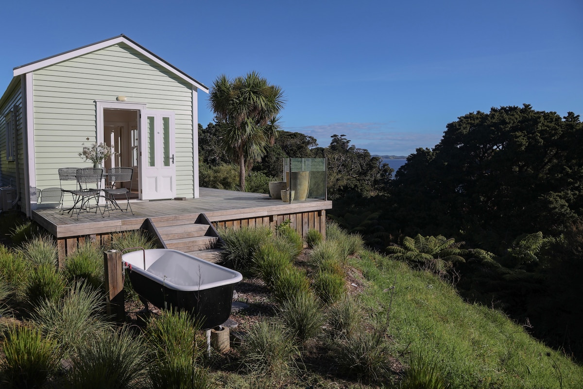 Cozy and private cottage with sweeping farm views and a wood-burning cedar outdoor spa - perfect for relaxing under the stars. Enjoy open-plan living, a comfy sofa, a well-equipped kitchen, a king size bed and panoramic windows. Wake up to sunrise views, stroll the property, or visit nearby beaches and the Matakana Farmers' Market. Ideal for a romantic getaway or peaceful escape. Just a short drive away is the charming village of Matakana & beautiful Omaha Beach.