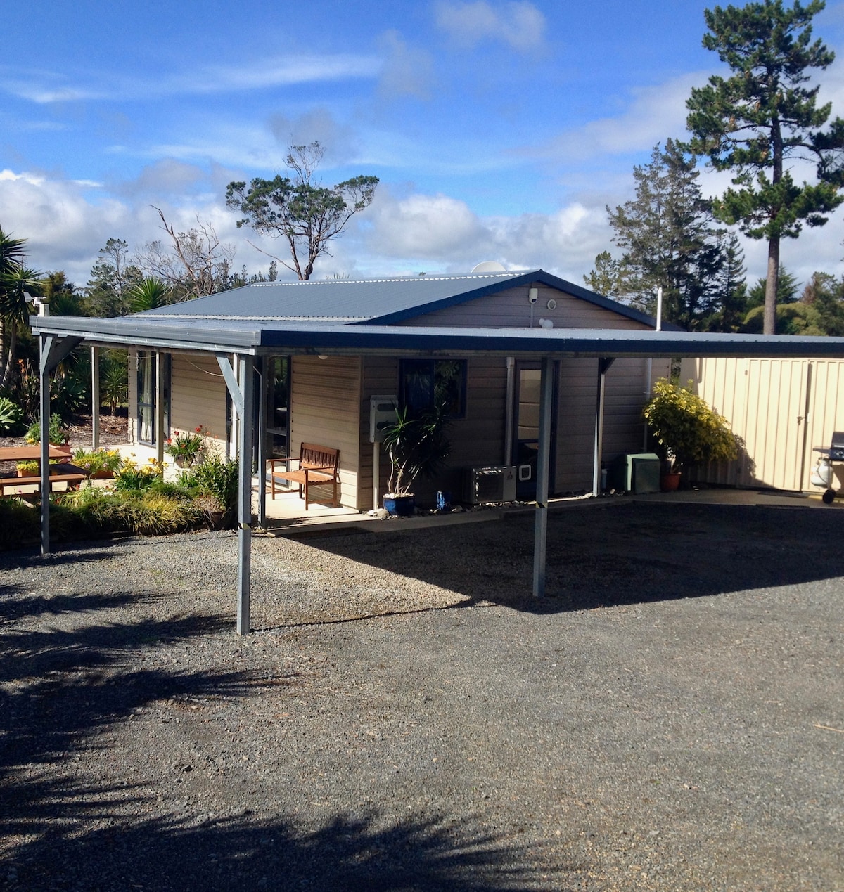 Newly renovated large open plan guest house/studio. Includes a basic cook your own breakfast with our own freshly laid eggs. Set on our 35 acre family farm on Henderson Bay Road. Horses, chickens, cows etc. Plenty of space if you want to bring the boat. Free Wifi & Sky TV.