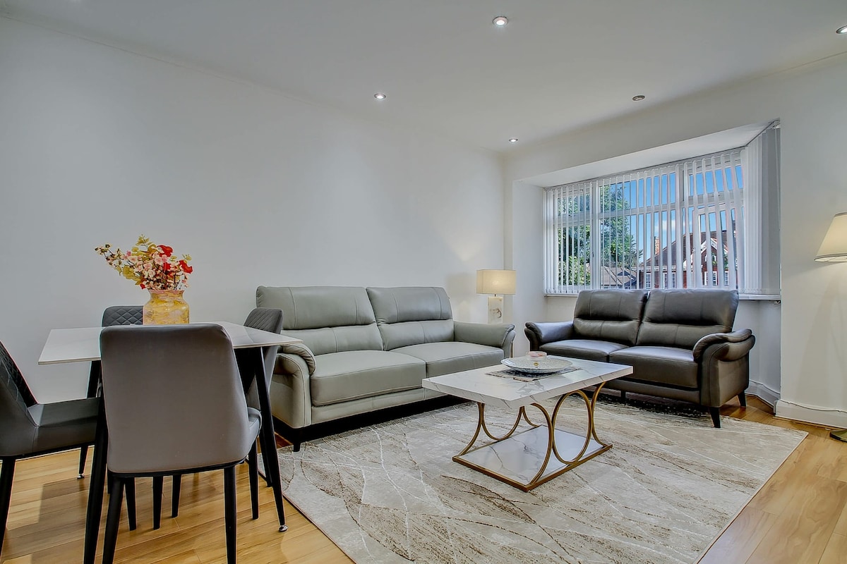 Escape to this beautifully refurbished 2-bedroom with ensuite, flat in a secure gated location. Accommodating up to 4 guests, it offers a tranquil retreat with excellent transport links: a 10-minute walk to Rayners Lane station and a short drive to Pinner or Eastcote stations. Enjoy free parking, high-speed Wi-Fi and modern amenities, including a fully equipped kitchen and elegant living space. Perfect for families, couples or groups looking to explore London while enjoying peace and comfort.