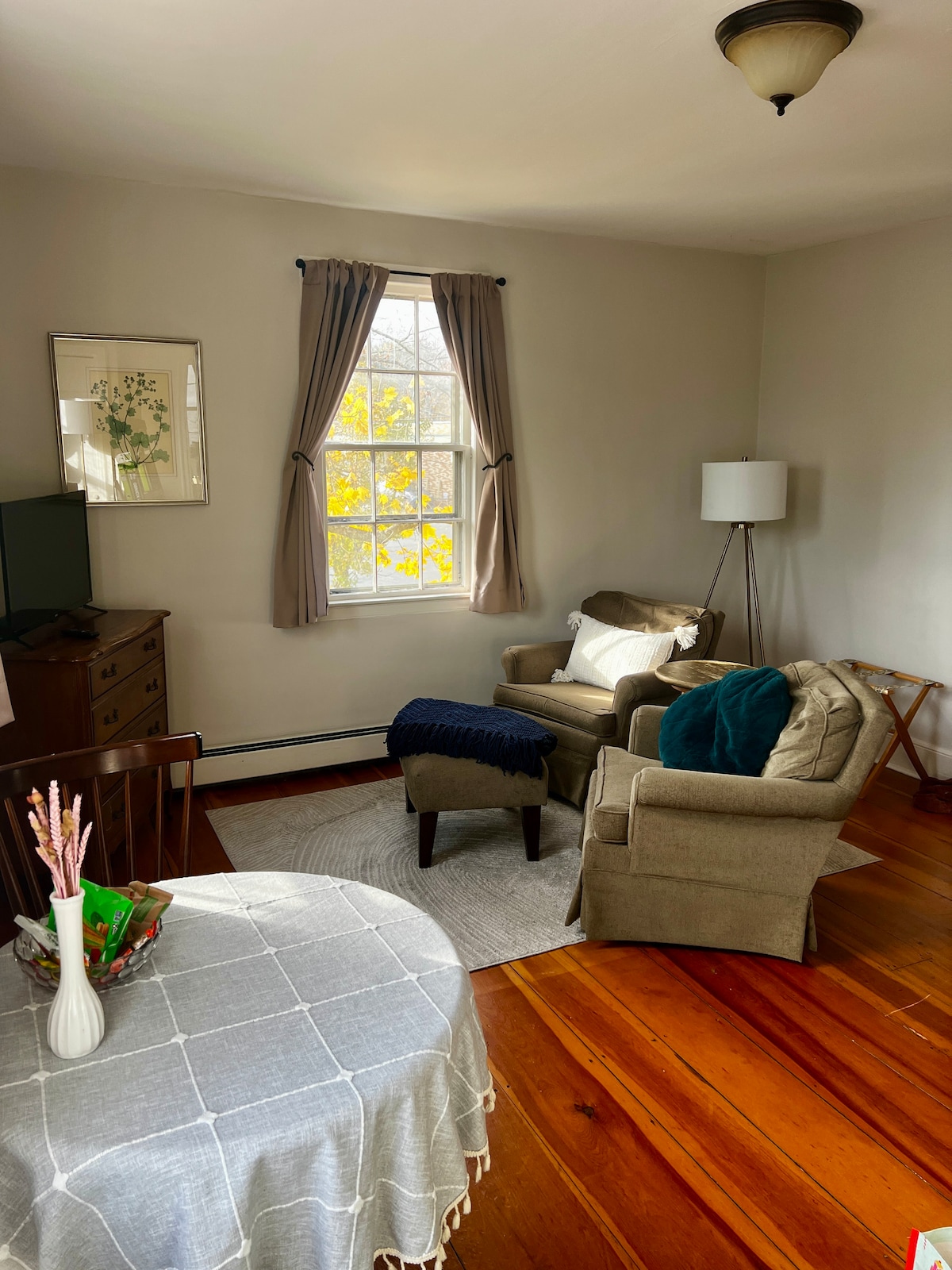 Cozy, comfortable studio apartment in walking distance to the waterfront. This second-floor space has an open layout that includes kitchen, bathroom, dining table, queen-size bed and lounging area. A full-size futon couch accommodates extra friends or kids. Plenty of appliances for cooking. Games, books and streaming TV services for rainy days or evenings in. The well-applianced apartment overlooks a lush perennial garden in a quiet residential neighborhood. Walk to Main Street in 10 minutes.