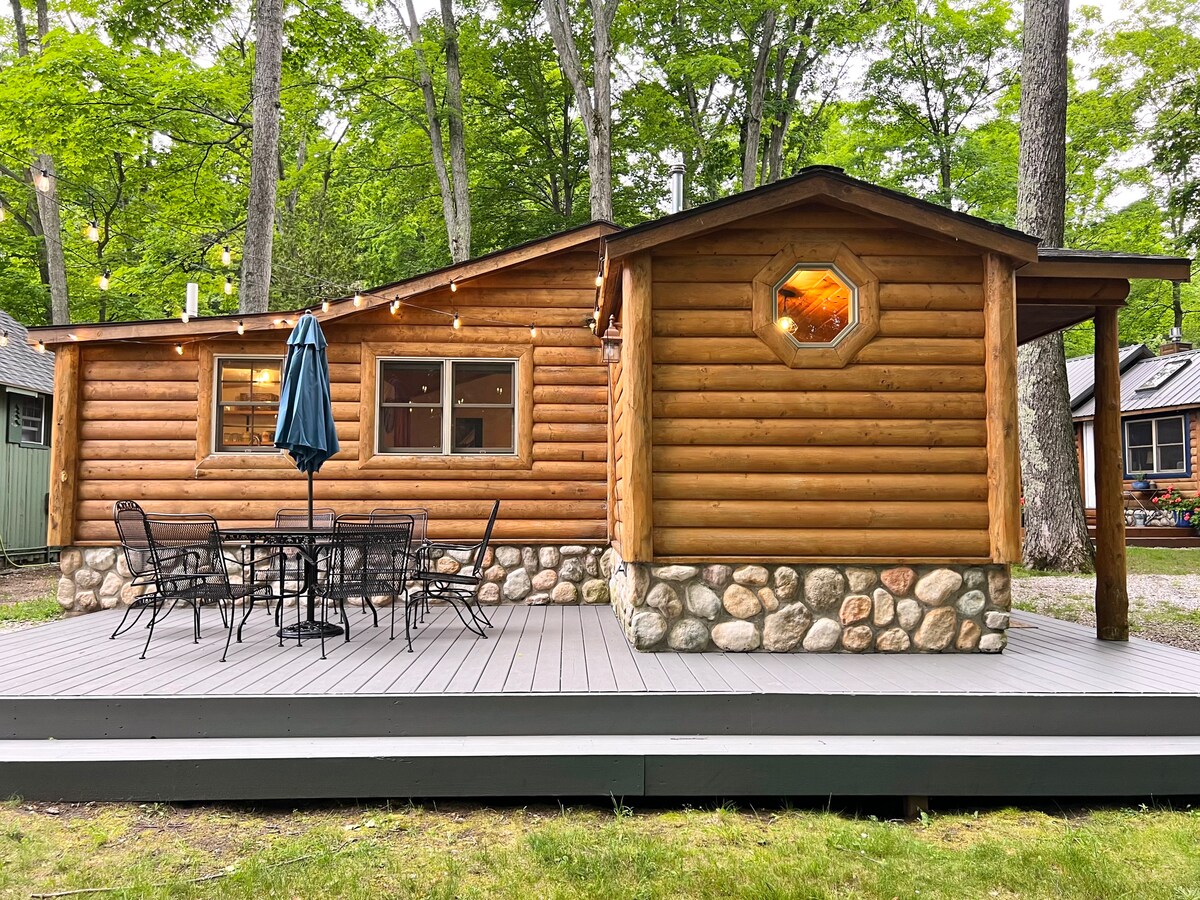 Applewood Cottage is a true "Up North" retreat within walking distance to the Village of Northport. 2 bedrooms (queen in each) and sleeper sofa in living room. Inside beautiful knotty pine walls and ceilings; gas fireplace, full kitchen. Outside a large patio overlooking the woods with gas grille. Barrier free. Applewood and its sister cabin, the Cherrywood, are attached properties. Rent both for a larger event! They are part of the Homewood Cottage Association.