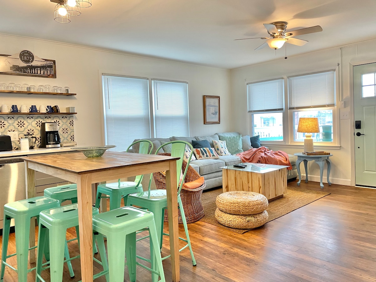 After relaxing at the beach (just a 7 min walk away), unwind on our deck "watchin' the tide rollin' away!" Get the best of the bay & the beach with this dog-friendly hidden gem! Imagine evenings enjoying the bay breeze as you crack crabs on the deck! Relax inside our open-concept great room that allows everyone to be together. Fish on our private dock or use it for your own boat or jet-ski to dock there. Witness spectacular sunsets with our Kayaks. Enjoy a well lit, private work space to virtual work w/ high speed internet! A new wood CRIB now in master suite for restful sleep! The pools and tennis/pickleball courts are only a few blocks away for your enjoyment! Plus, a truly unique OUTDOOR MOVIE EXPERIENCE for all our guests to make for the best Vacay EVER!