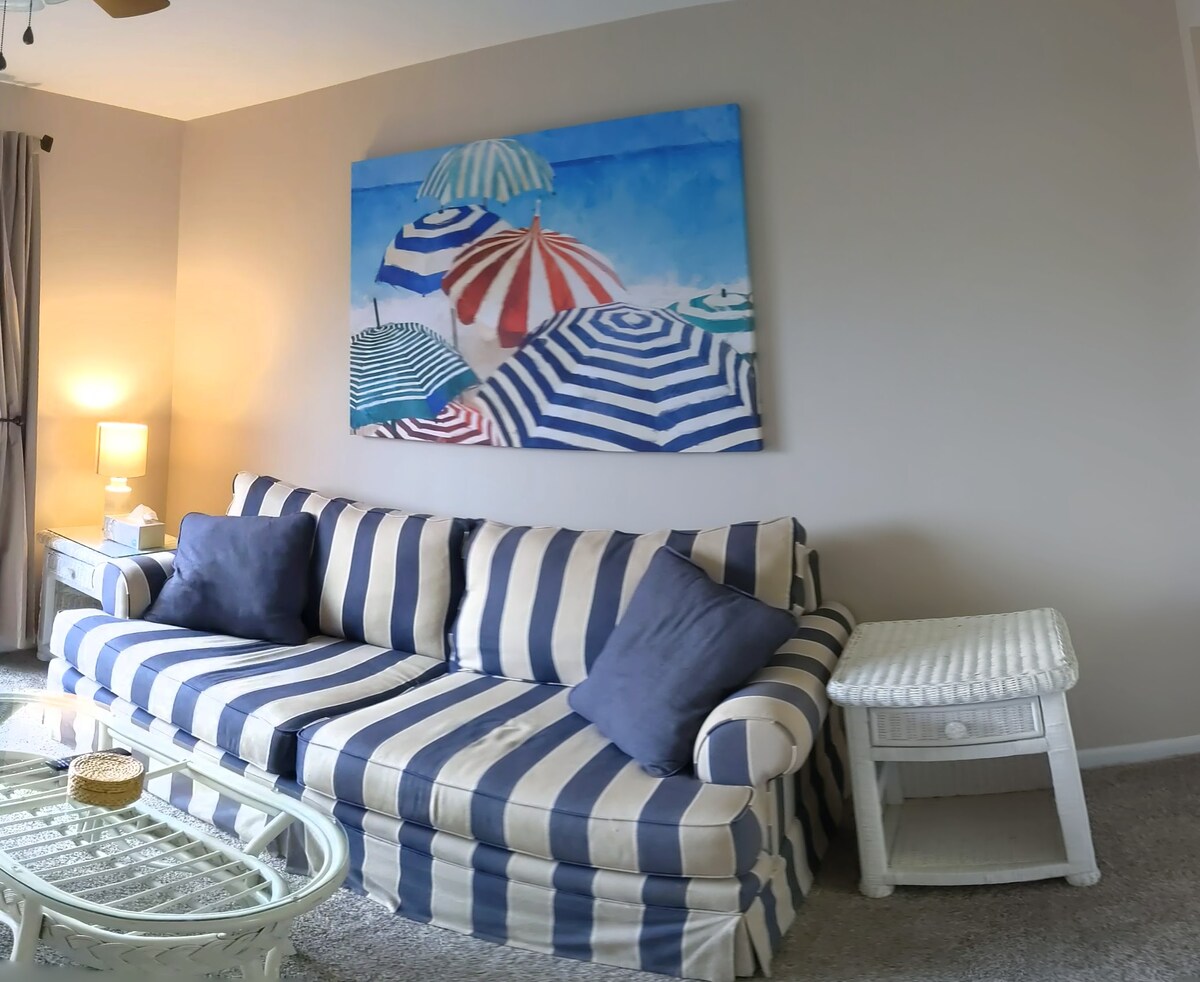Kick back and relax in this calm, newly remodeled condo only a few steps from the beautiful Ocean City beach. Located uptown , across the street from Starbucks, Juice Bar, Wawa, Justine's Ice Cream, CVS Pharmacy, McDonald's, Candy Kitchen and a lot of restaurants like Crabcake Factory and Tailchasers. Northside Park on 125th St is a quick walk to watch soccer tournaments or July fireworks. Park your car in the lot and take the OC bus for $4 all day.