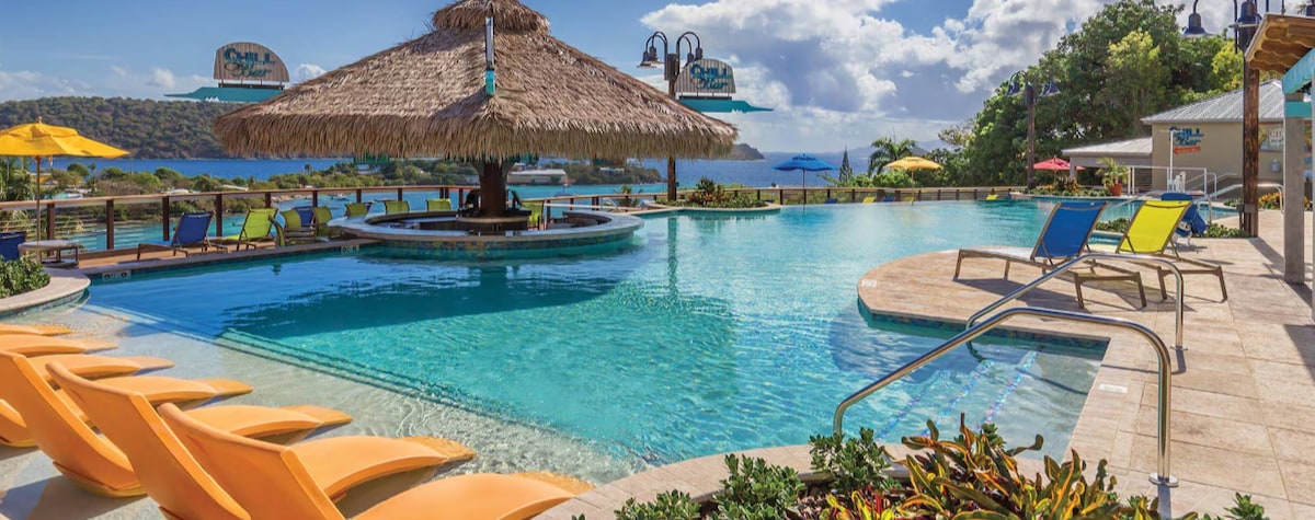 Hilltop Villas bring modern minimalist style to island living—and place you right in the heart of the action. With sleek, city-inspired décor and expansive water views from every unit, this area is ideal for guests who appreciate contemporary design and breathtaking vistas. While the balconies are more intimate than other resort areas, they're perfectly sized for sunning and alfresco dining—giving you a front-row seat to St. Thomas sunsets, endless Caribbean blue, and all the resort buzz.