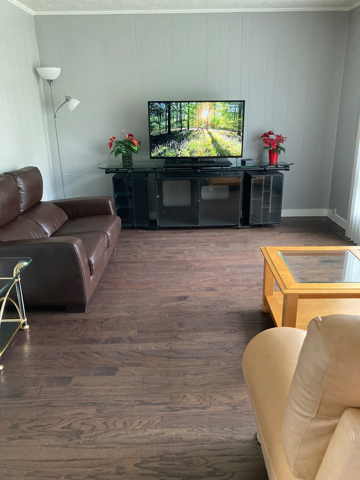 I am located less than a minute walk, across the road from the beach and waterfront trail in a fully furnished, newly renovated basement suite (new ceilings, floors, appliances , Kitchen etc). Parking included along with a private entrance with secluded patio and bbq. For your private use. Living room includes pull out sofa and sofa. Portable blue tooth speakers, apple tv, Netflix, Prime, Disney + , Crave and high speed wifi. Dining room table , includes queen size bed, double and single bed.