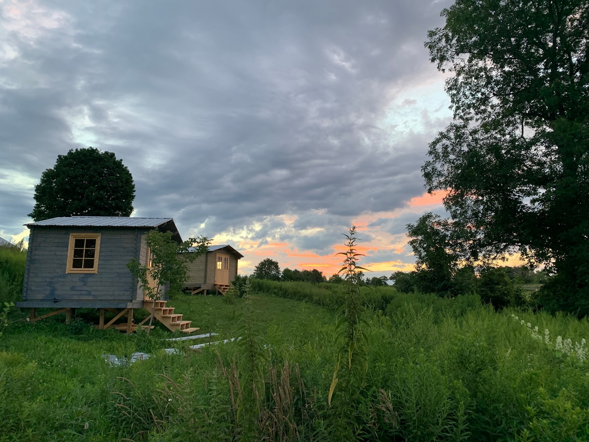 - Cozy, Amish-built cabin with vintage decor - OUTDOOR SHOWER CLOSE UNTIL MID MAY!!!!! - Queen bed in the loft - NO running water in the cabin - The perfect country getaway - Large screened in porch with field view Equipped with fridge, stove, gas BBQ, fireplace, indoor composting toilet, firepit ($20 for firewood). No running water. Dishpan + wash basin provided. Outdoor shower is seasonal,you have to heat the water yourself!