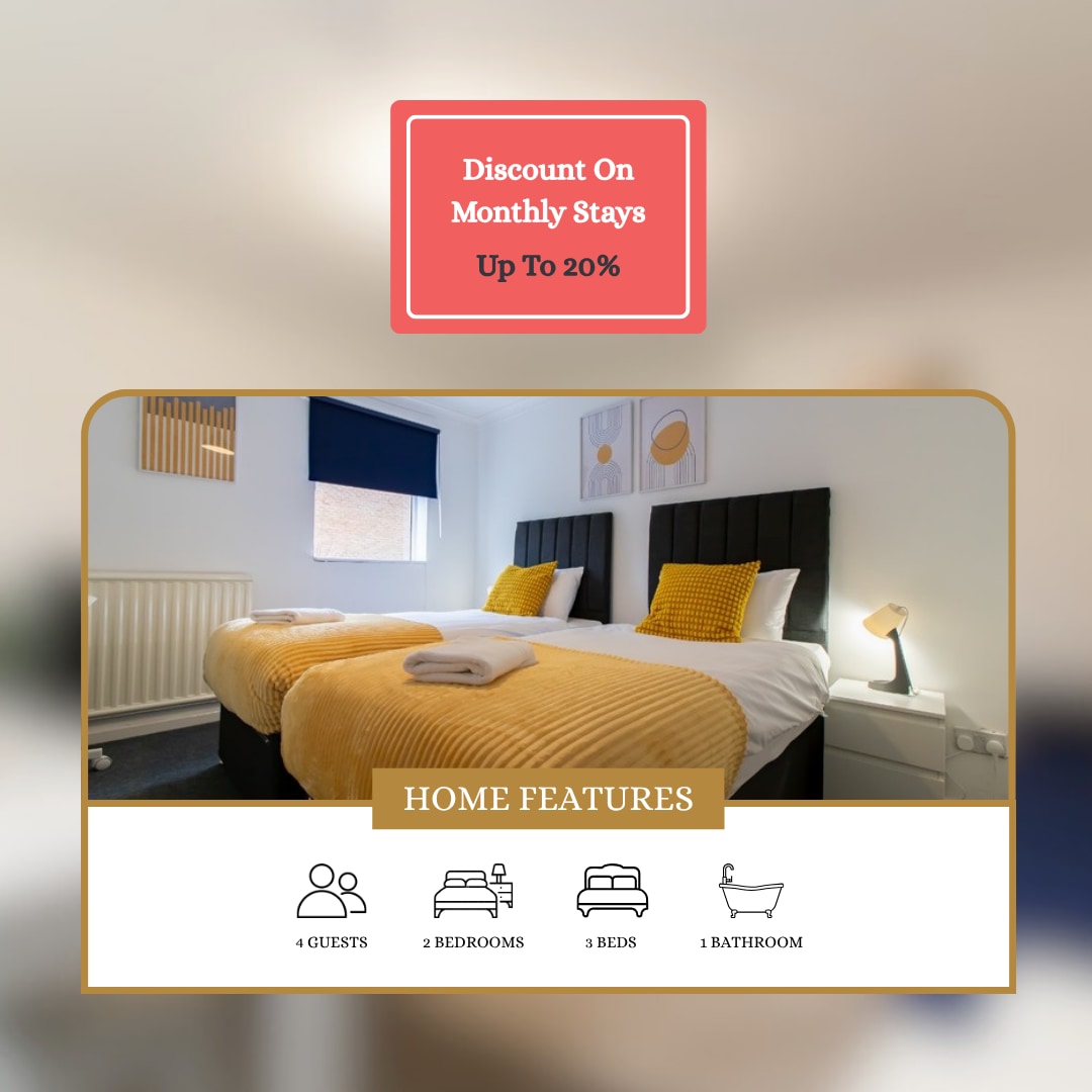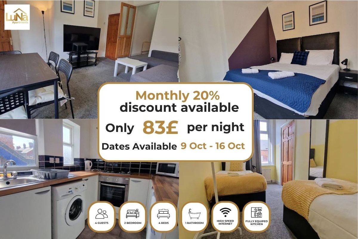 平均评分 4.41 分(满分 5 分),共 22 条评价纽卡斯尔附近的时尚双床公寓–可住6人