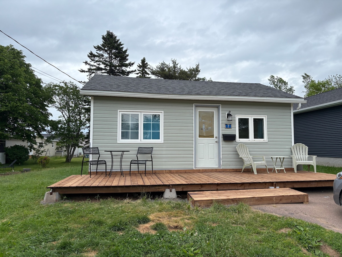 This modern flat hosts bedroom, living room , and bathroom It is kept VERY clean with large rooms Please no pets ! It has its own private entrance Private hot tub while enjoying the beautiful view Lg deck with bar b cue / sitting area There is a fridge-freezer, toaster, microwave, Keurig machine plus the Keurig cups, cutlery, dishes, and condiments available 3 km from scenic golfing 1-3 km away from scenic beaches and the town NO KITCHEN or kitchen sink (I will wash your dishes :)