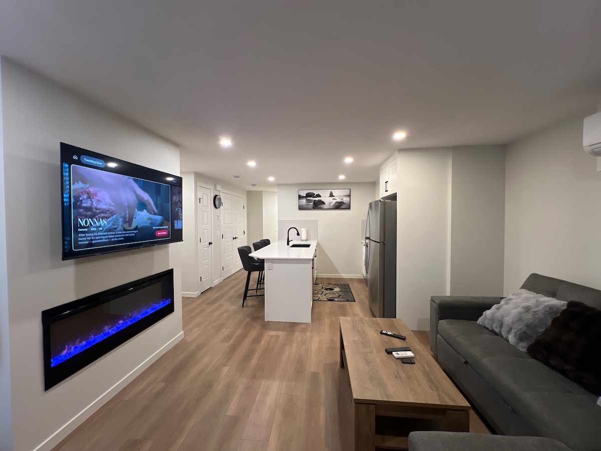 Unwind with the whole family in this peaceful and private walkout basement suite. Enjoy the comfort of your own separate entrance, a cozy living area, a bedroom with a queen-sized bed, in-suite laundry, and views of a beautifully landscaped backyard. The kitchenette comes equipped with an induction cooktop, microwave, and mini fridge—perfect for preparing light meals during your stay. Ideal for solo travelers, couples, or small groups—accommodates up to 4 guests.