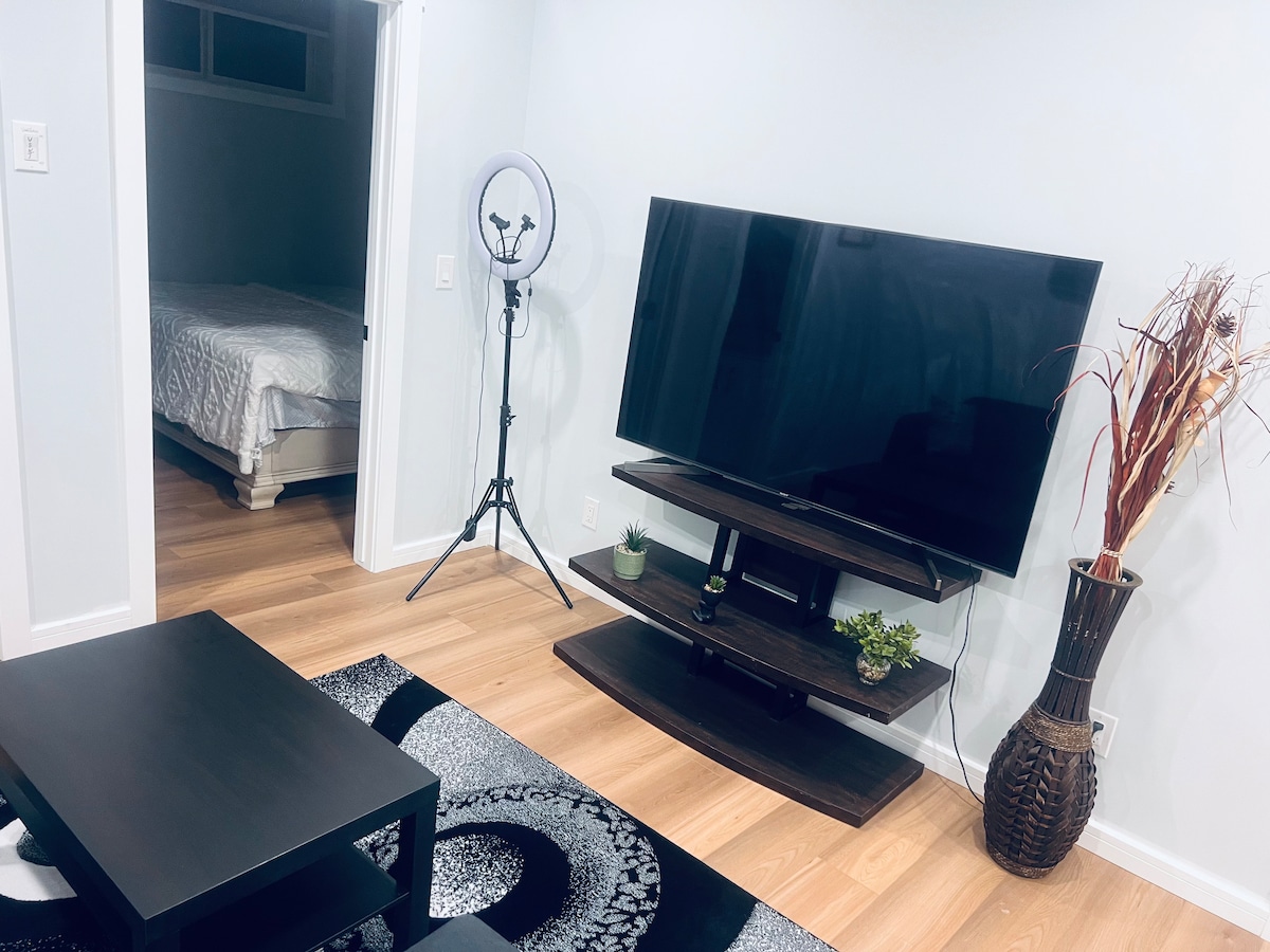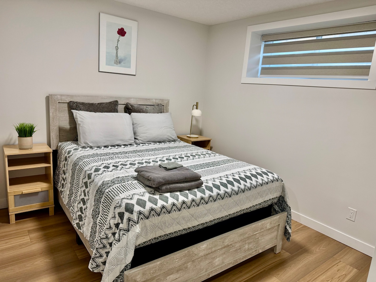 🌟 A private getaway! This bright basement suite features its own entrance and large windows, offering an apartment-like feel. 🌟 💎 Queen Bed & Queen Fold-out Bed 💎 Fully Stocked Kitchen 💎 Spacious Living Rooms 💎 High-Speed WiFi + 65" Smart TV (Netflix Provided) 💎 Washer + Dryer 💎 Free Street Parking 💎 Full Size Bathroom 💎 Crib, high chair & Pack 'n Play 💎 Keurig Coffee Machine (Pods, Tea & Water Provided)